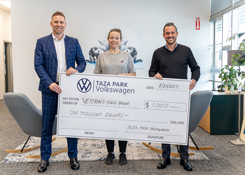 Taza Park Volkswagen is proud to support local veterans through a $1,000 donation to the Calgary Veterans Food Bank, made possible by our Let’s Go Canada Pre-Owned Sales Event. This contribution represents more than financial support, it reflects our gratitude and respect for the brave men and women who have served our country. We extend a heartfelt thank-you to our customers for helping make this donation possible, and to the Veterans Food Bank team for the essential work they do every day for Calgary’s heroes. At Taza Park VW, community matters, and we’re honoured to give back in a meaningful way.